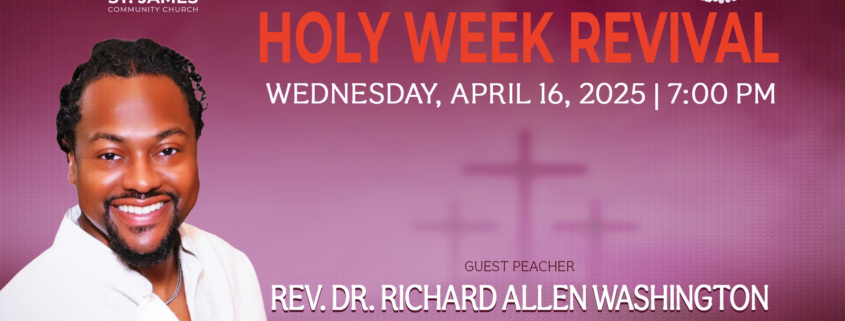 Prepare to be inspired and uplifted by the dynamic preaching of guest preacher, Rev. Richard Allen Washington from Saint John AME Church, Columbus, GA. Come experience a night of spiritual renewal as we journey together through the heart of Holy Week. All are welcome!