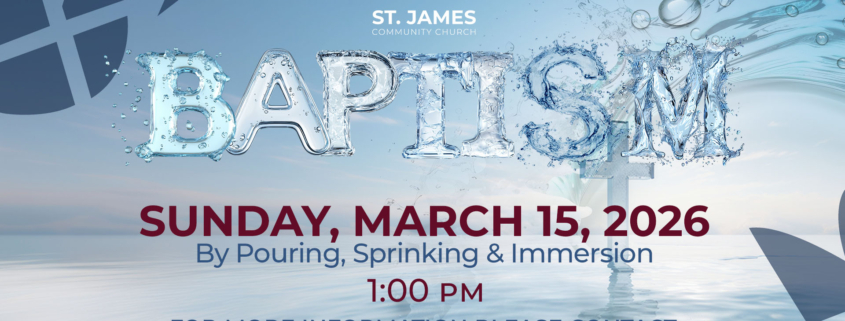 Celebrating Baptism at St. James We are joyful to announce that our next Baptism service will take place on Sunday, March 15th at 1:00 p.m. We honor the traditions of our faith by offering baptism through sprinkling, pouring, or immersion.