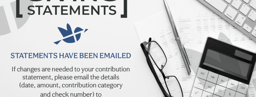 Giving statements have been emailed. If changes are needed to your contribution statement, please email the details (date, amount, contribution category and check number) to st*****@********ca.org.
