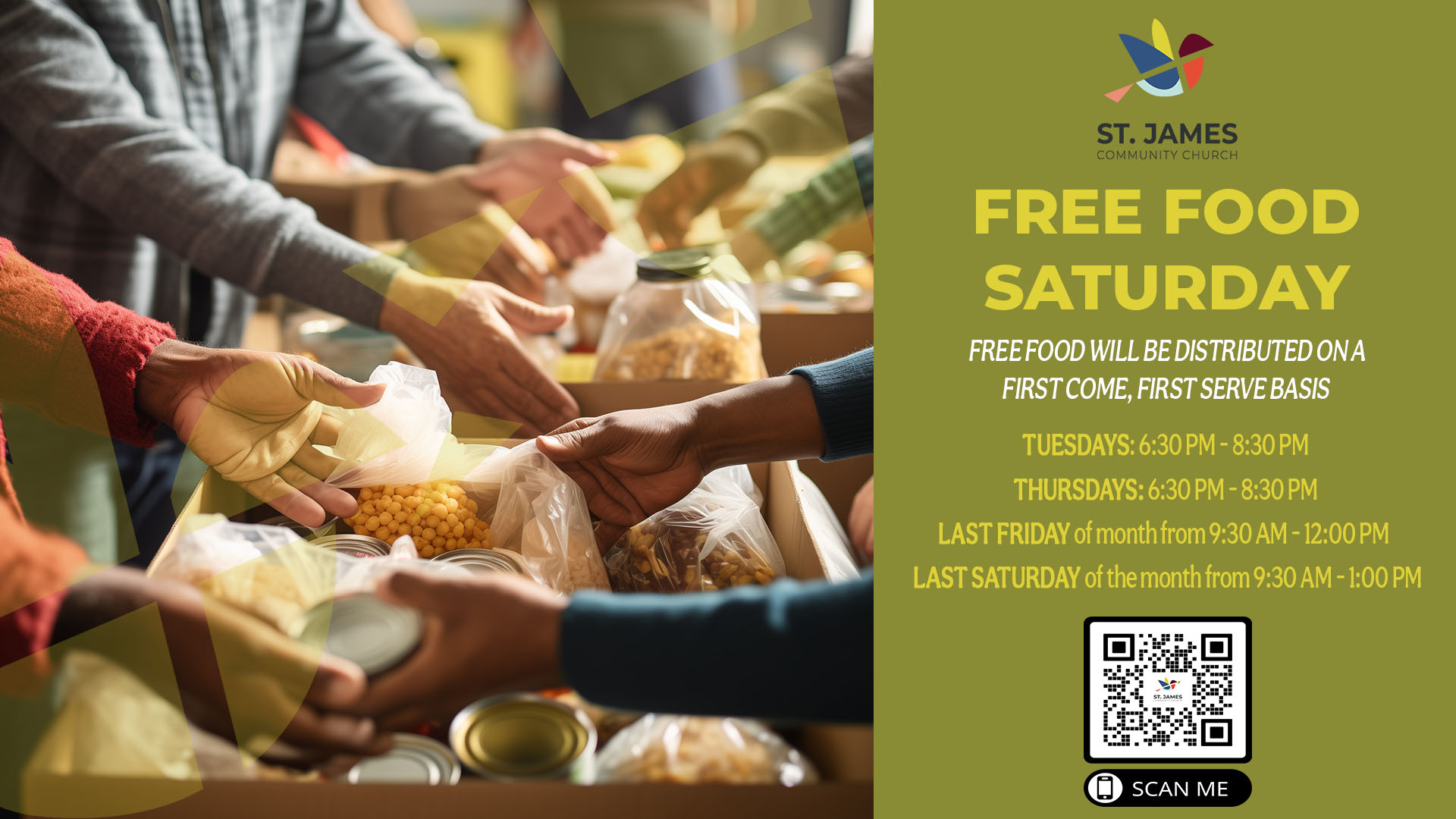 Your St. James neighbors are here for you! We believe everyone deserves access to food. If you or someone you know is facing food insecurity, please come and receive support from our caring community at St. James. No questions asked, just genuine help. We will have our Free Food Saturday Giveaway on Friday, December 19, 2025. Please take note of the following schedule for […]