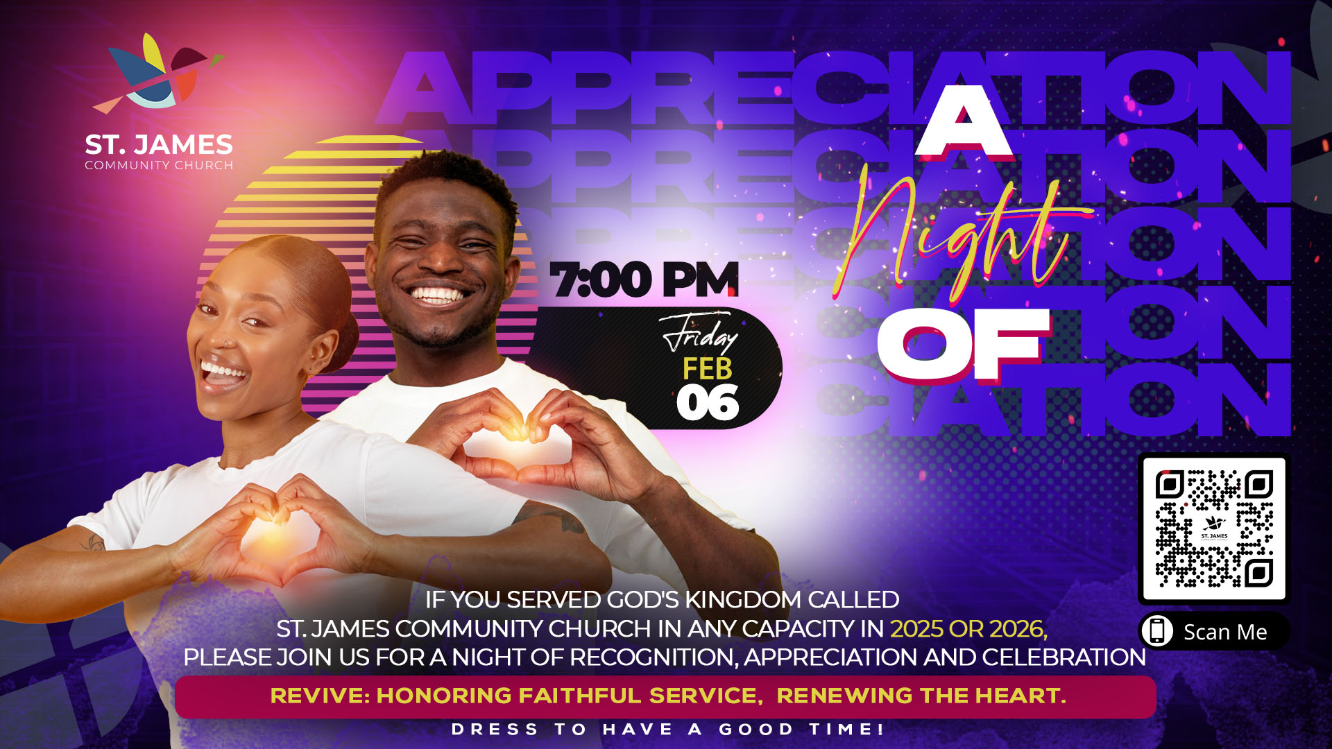 REVIVE: Honoring Faithful Service, Renewing the Heart A Special Night for Our Dedicated Volunteers & Servants Because of your "yes," lives are touched, doors are opened, and God’s love is experienced throughout our community. You are the heartbeat of St. James Community Church, and it is because of your dedication that we continue to grow and […]