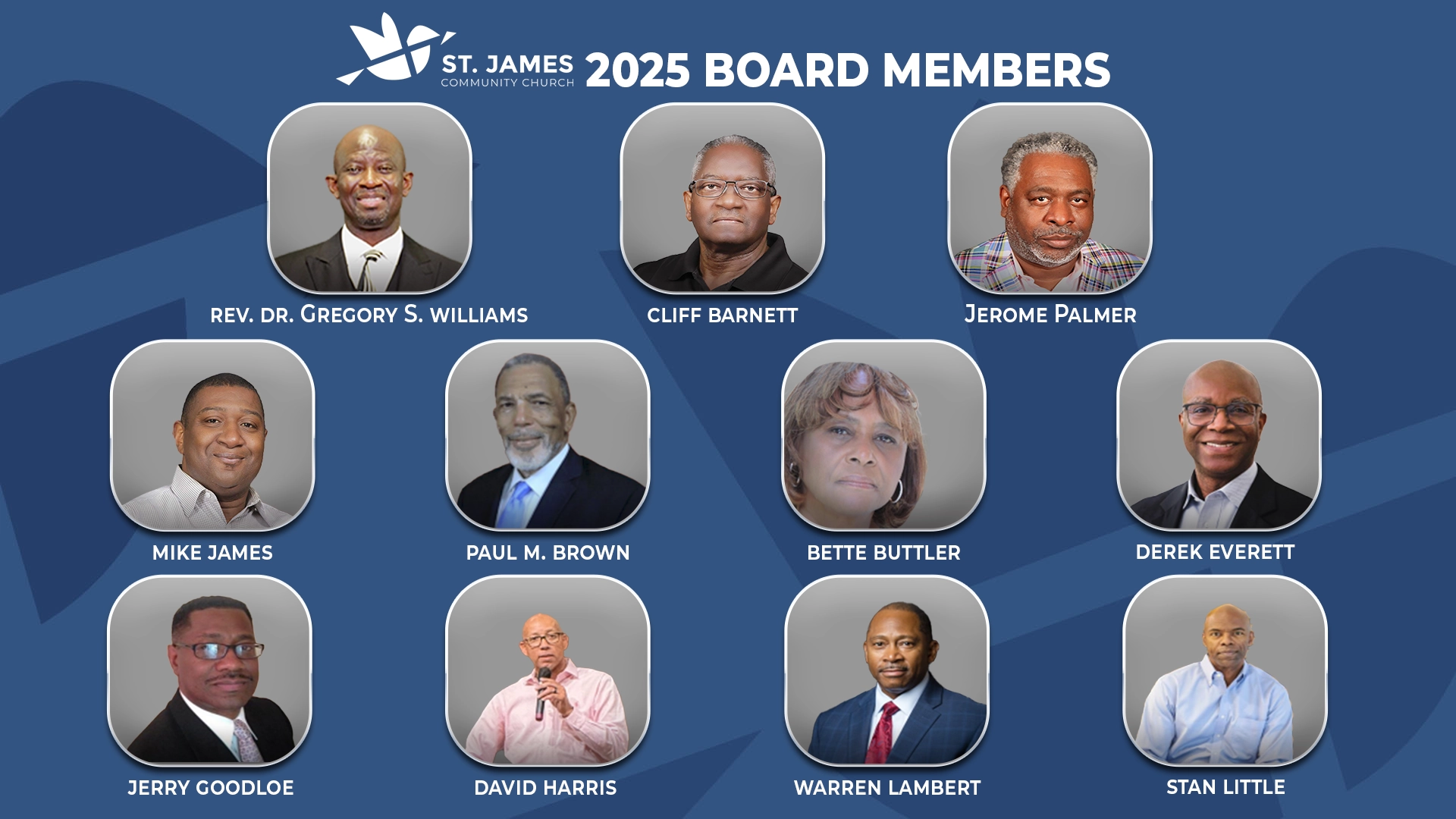 Thank you for being a part of this transformative moment. We invite you to continue praying for our new Board of Governance as they begin their work in leading St. James into this exciting new season. Stay connected for further updates and next steps as we build a future that honors God and strengthens our church family.